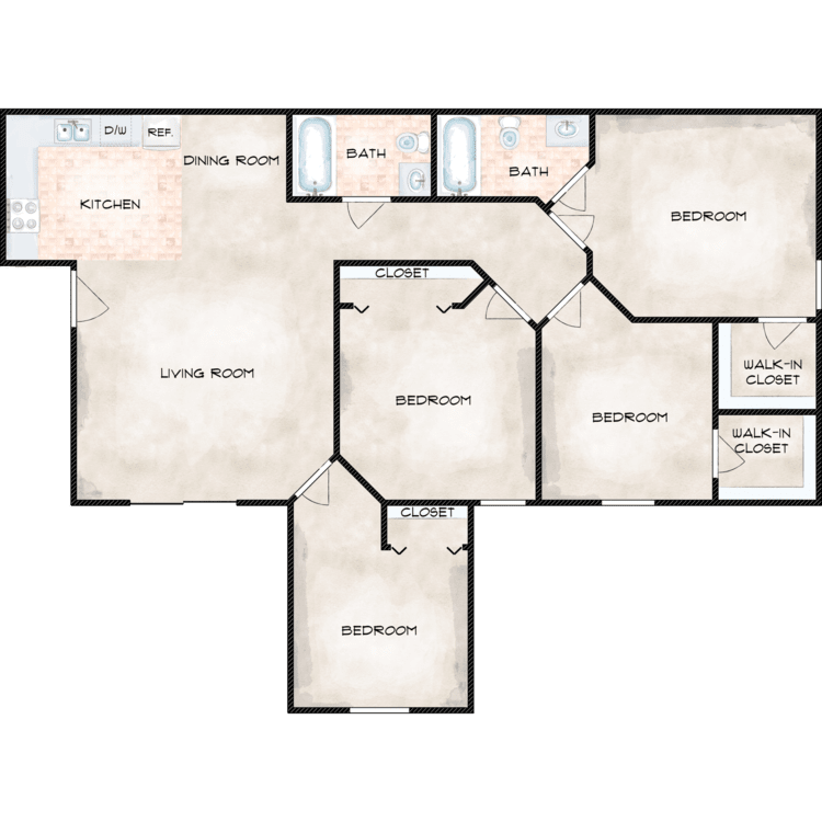 Our community offers spacious two, three, and four-bedroom apartments for rent, thoughtfully renovated with fresh paint, new cabinets and countertops, new carpet, and updated lighting fixtures. Each home features a kitchen equipped with new appliances, including a refrigerator, dishwasher, and stove, making everyday meal preparation simple. Enjoy a balcony or patio that provides a comfortable space to relax outdoors. Experience the ease of a well-designed home created with your comfort in mind.